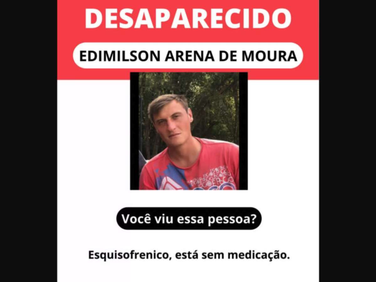 Uma família de Dom Feliciano está em busca desesperada por seu filho, Edimilson Arena de Moura, de 24 anos, que desapareceu em Porto Alegre no último sábado, dia 9 de julho. Edimilson é portador de esquizofrenia e, preocupantemente, está sem acesso à medicação necessária para seu tratamento.