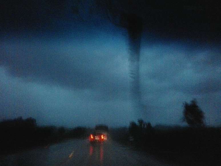 Um jovem fotografou um tornado na última quarta-feira próximo a uma rodovia em Encruzilhada do Sul, no interior do Rio Grande do Sul. Gustavo Frey, 29 anos, contou que trafegava de carro pela RS-471 por volta das 17h quando escureceu rapidamente e ele decidiu fazer o registro com a câmera do telefone celular. "Eu voltava do meu trabalho em Encruzilhada e se armou o temporal. Eu estava dentro do carro e me deu um estalo: vou tirar foto", disse o vendedor externo, que mora em Santa Cruz do Sul e postou as fotos em seu perfil no Facebook. "Meus amigos brincam que peguei do filme Twister, mas estão no meu celular", avisou.