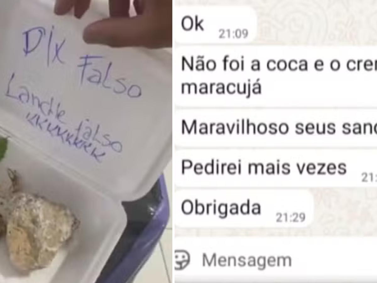 Em entrevista à TV Anhanguera, o empresário Vitor de Souza Silva contou que eles usaram embalagens velhas e, em uma delas, escreveram: “pix falso, lanche falso”.