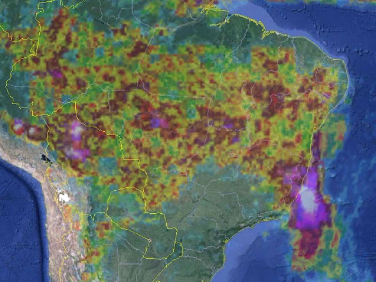 Relatório feito pela agência espacial americana considerou 3 dias desta semana; ao todo, cinco pessoas já morreram devido às chuvas, e 19 mil foram afetadas