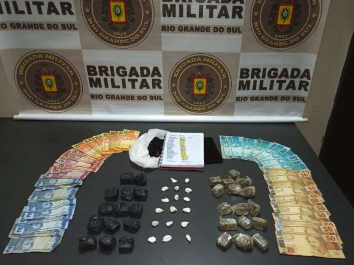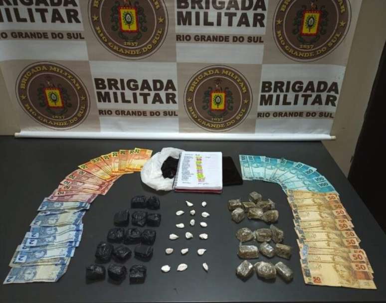 No total, foram apreendidas 17 buchas de cocaína (pesando 8,7 gramas), 30 porções de maconha (pesando 370 gramas), grande quantia em dinheiro referente às vendas já realizadas e um caderno com anotações da comercialização dos entorpecentes.