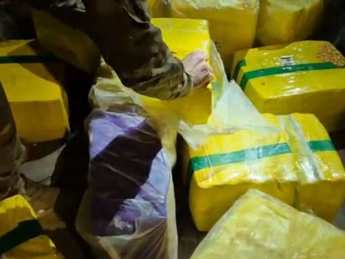 Durante a inspeção, os agentes encontraram o entorpecente escondido entre a carga de milho transportada pelos veículos.