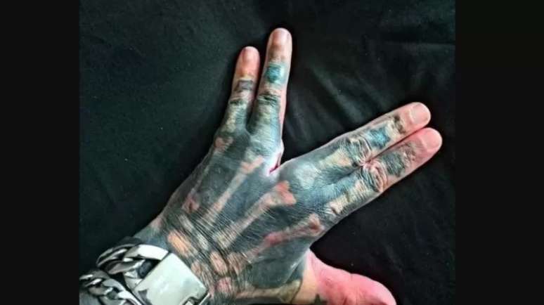 'Mão do Diabo': Brasileiro 98% tatuado faz corte entre os dedos; veja