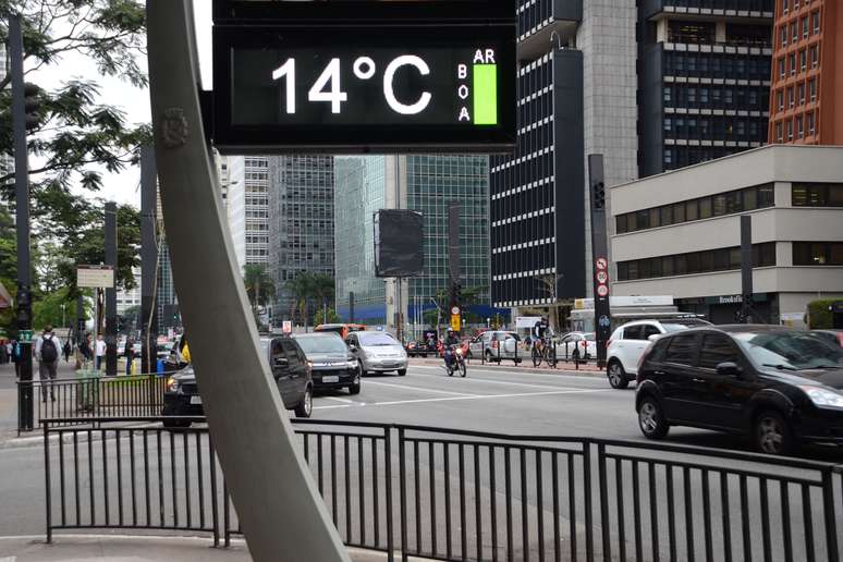 A máxima prevista para esta quinta-feira é 18°C, porém, por volta das 11h30, a estação medidora do Tremembé, na zona norte, registrou 19,2ºC.