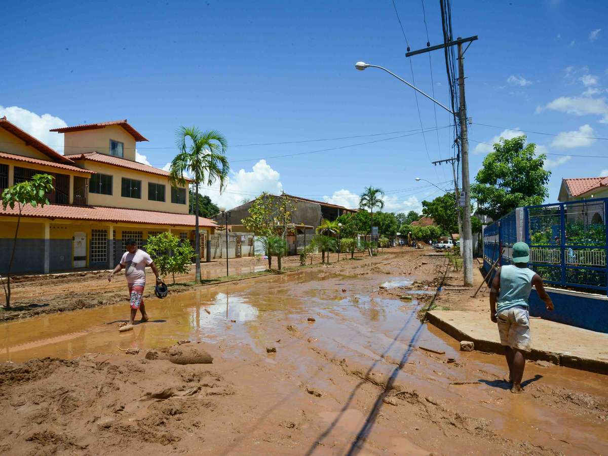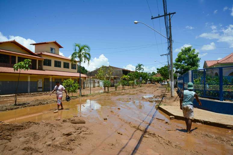 26 de dezembro - Moradores caminham por via tomada pela lama em Aimorés