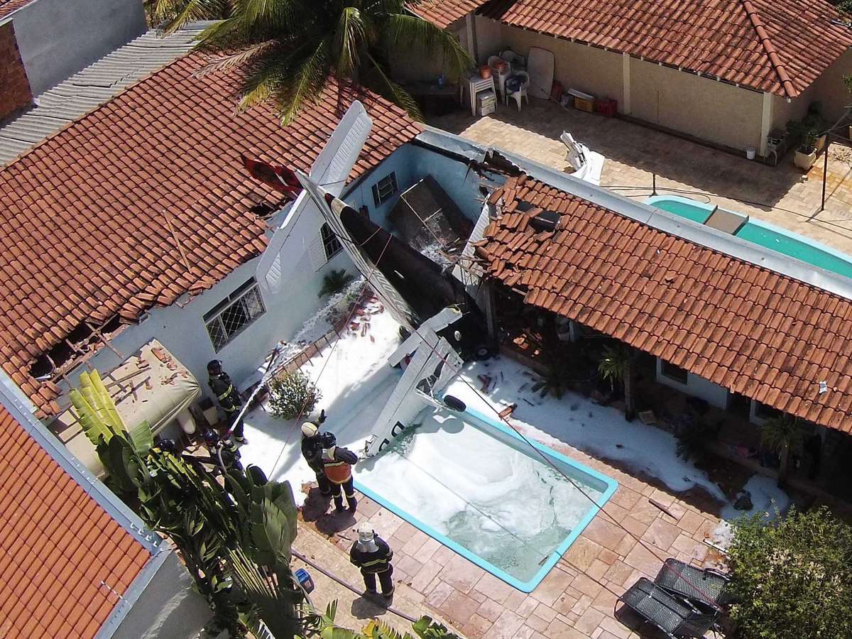 De acordo com a Polícia Militar, a aeronave caiu sobre a piscina de uma residência, que fica a poucos metros do aeroporto. O acidente, segundo os Bombeiros, ocorreu por volta das 13h10.