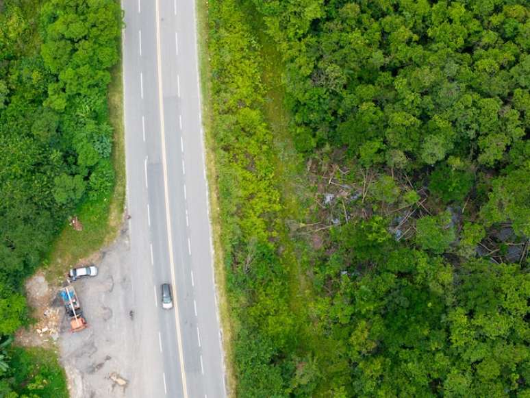 Áreas antes visíveis apenas por drone surgem agora expostas à beira da Rodovia Rio-Santos, como no km 168, onde o Estadão flagrou estacas e arame farpado que cercam um lote recém-desmatado.