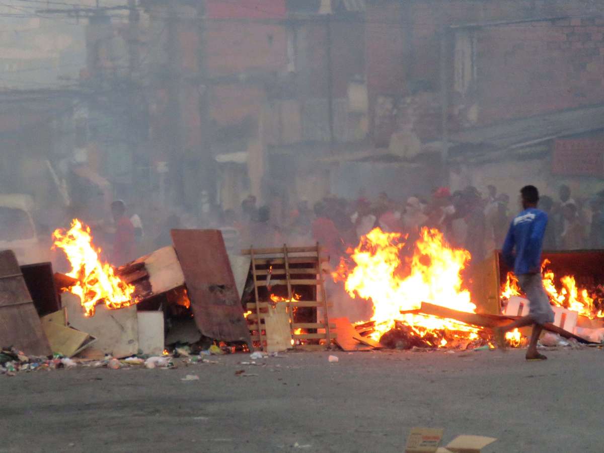 Segundo a Polícia Militar, o grupo está queimando objetos, entre eles pneus. Os moradores pedem mais segurança e sinalização do local.