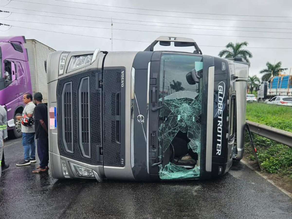 No primeiro, um caminhão colidiu com outro veículo de carga, tombando em seguida e derramando óleo diesel sobre a pista.