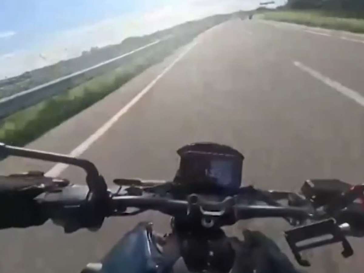 As imagens exibidas pela TV Verdes Mar, afiliada da Rede Globo, mostram o rapaz seguindo pela via até que entra em uma curva e começa a reduzir a velocidade, até perder o controle. Ele acaba batendo no guarda-corpo da pista e vai ao chão.