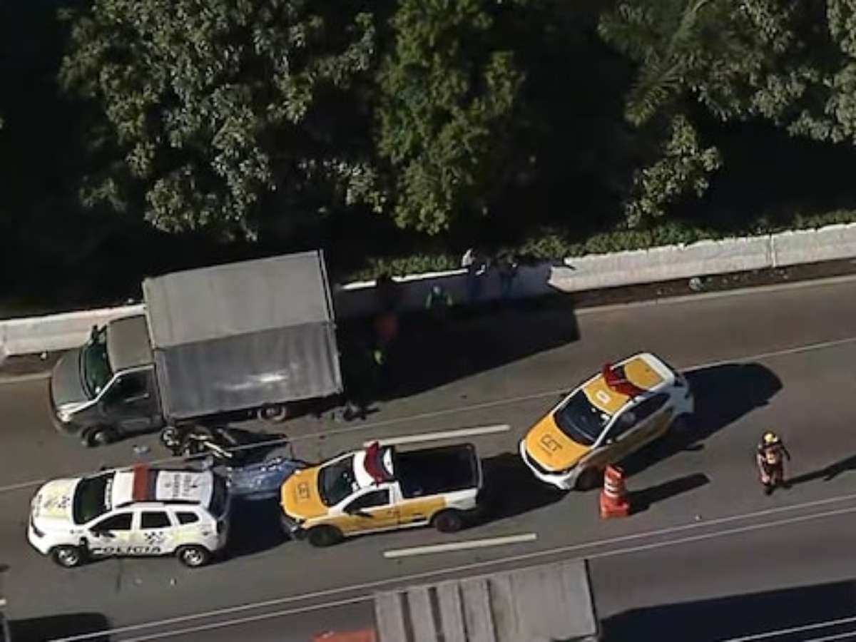 Motociclista morre em acidente com caminhão na Marginal Pinheiros; há bloqueio no local