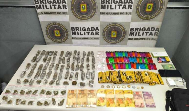 O material apreendido indicava possível envolvimento com tráfico, dado o volume e a variedade dos itens transportados. Também foram encontrados documentos de identidade e uma bag preta de pequeno porte.