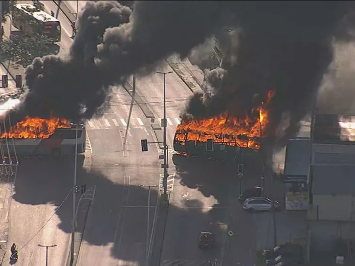 Além dos ônibus, veículos e pneus também foram queimados a mando de criminosos. O Centro de Operações da Prefeitura do Rio decretou estágio de mobilização, o segundo nível em uma escala de cinco, indicando que há riscos de ocorrências de alto impacto na cidade.