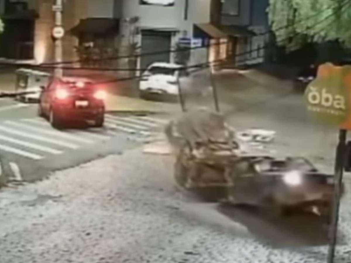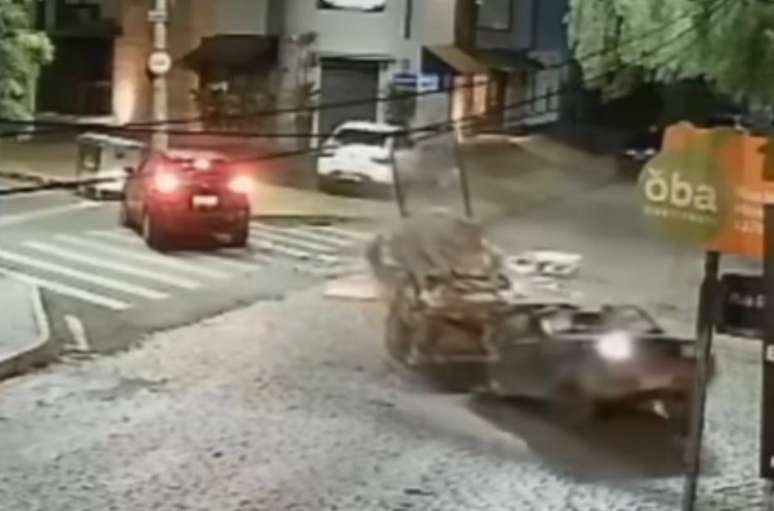 Uma câmera de segurança registrou o momento em que a Saveiro com materiais recicláveis passava pela rua em velocidade baixa e foi acertada por outro veículo, que cruzava a via. Apesar do carro ter partido ao meio, o motorista saiu do meio do cruzamento e não se feriu.