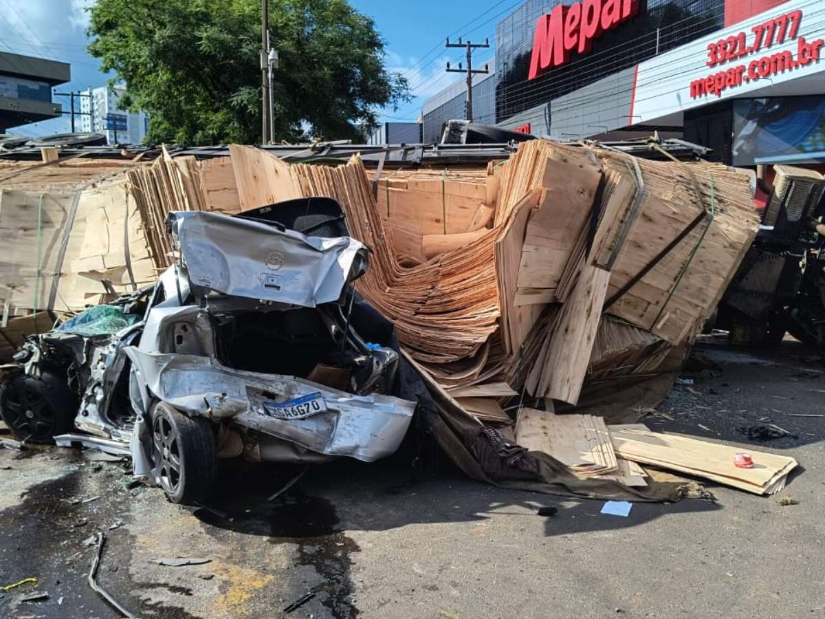 Segundo o Corpo de Bombeiros Militar de Santa Catarina, o caminhão estava carregado com compensados de madeira quando aconteceu a colisão contra os veículos que trafegavam pela via.