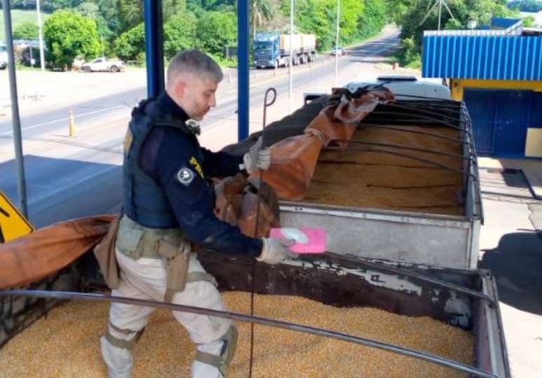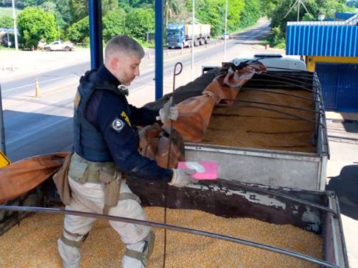 A carreta, a carga de milho e o material ilícito foram apreendidos e encaminhados para a perícia. A Polícia Civil investiga o caso para identificar a origem da droga e o destino das munições, além de buscar outros envolvidos na ação criminosa.