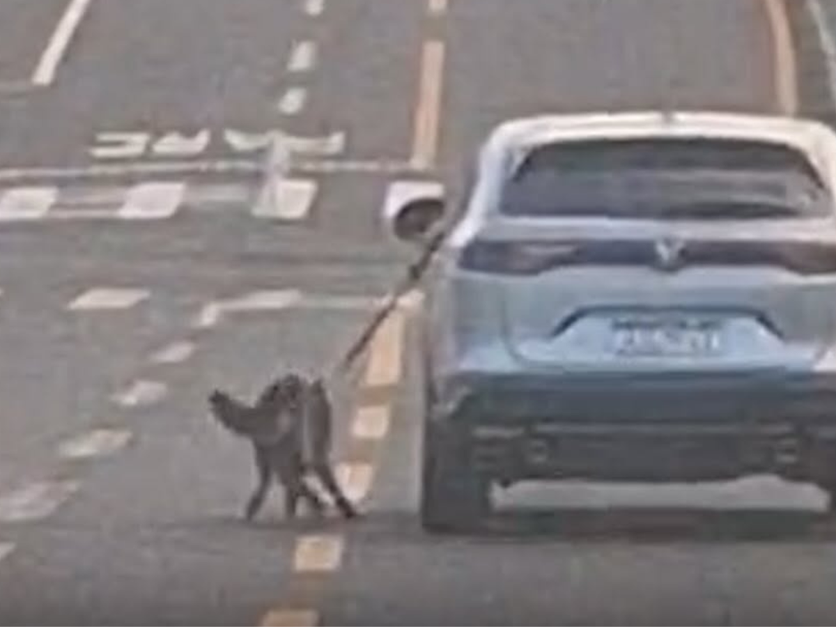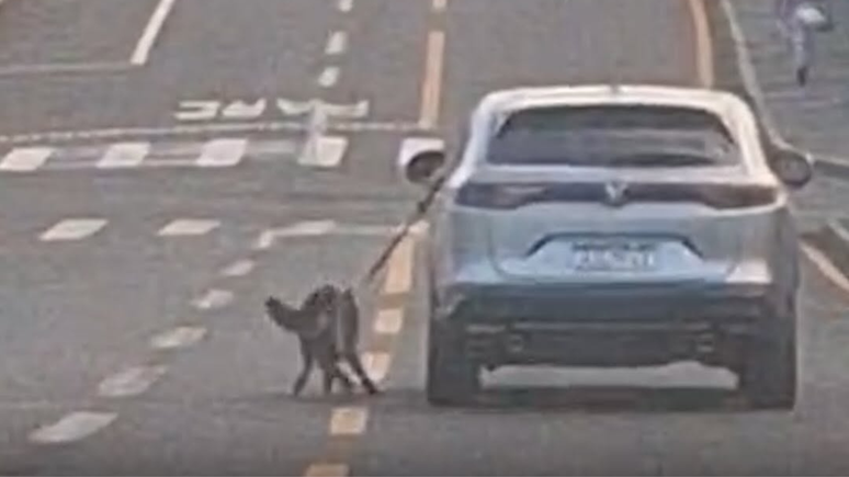 Motorista dirige carro com cachorro preso do lado de fora pela coleira no PR; veja vídeo