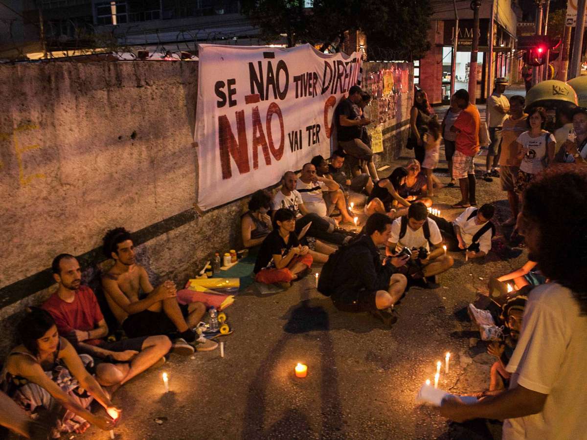 24 de maio - Apesar do fogo, protesto na Copa do Mundo foi pacífico