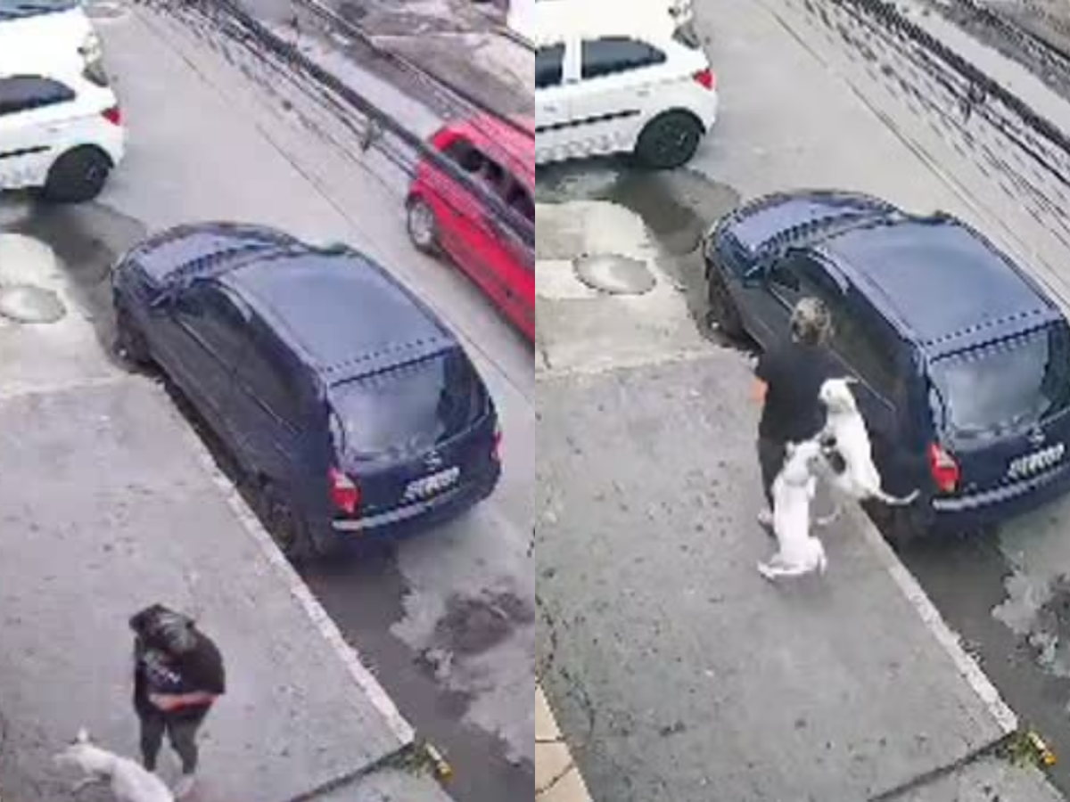 As imagens captadas por uma câmera de segurança da Rua Silva Neto mostram a mulher parada na calçada quando é surpreendida pelos dois cães. Assustada, ela tenta sair de perto dos pitbulls, mas eles avançam e tentam mordê-la.
