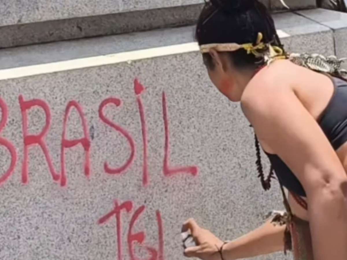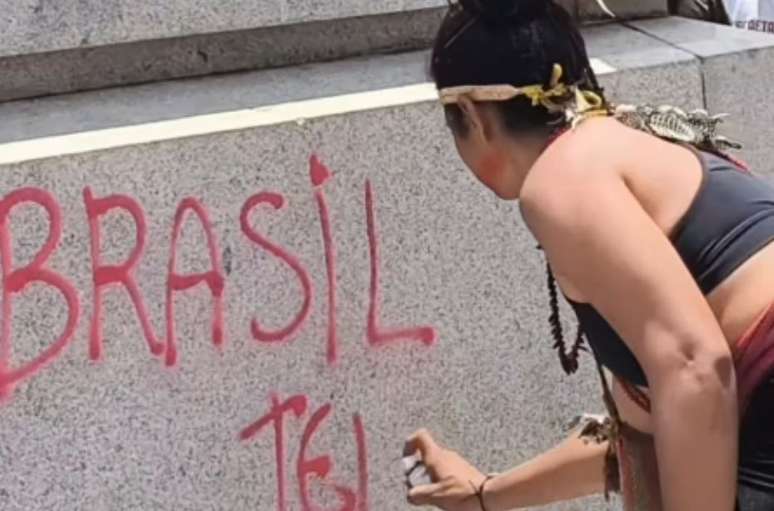Uma mulher indígena de 37 anos foi detida, neste domingo, 14, por pichar o Monumento à Terra Mineira, na Praça da Estação, em Belo Horizonte (MG). O caso ocorreu durante o protesto contra o Projeto de Lei (PL) da Dosimetria. A defesa de Thabata Pinheiro Campos, que se apresenta como Thata Borun Xonin – etnia indígena da qual faz parte – usou spray para pintar cabelo de criança, ou seja, tinta lavável.