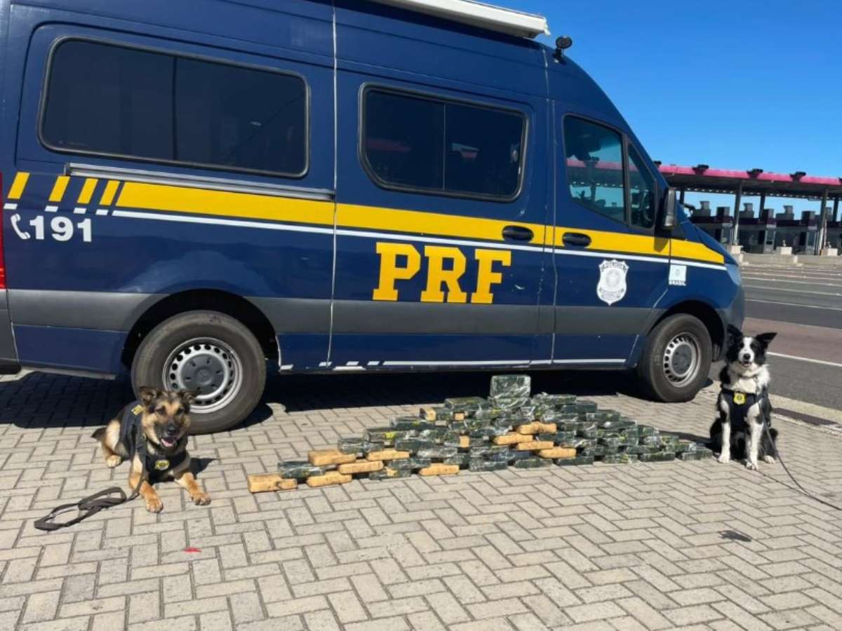 A ocorrência aconteceu na praça de pedágio, quando agentes da PRF pararam um ônibus intermunicipal que seguia de Mariluz com destino a Porto Alegre. Durante a inspeção no veículo, cães farejadores sinalizaram a presença de entorpecentes em bagagens acomodadas no compartimento inferior.