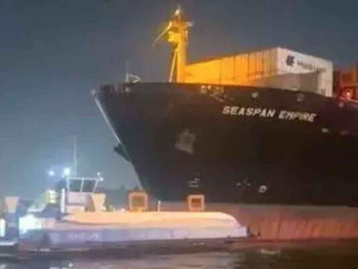 Navio porta-contêineres atinge duas balsas no Porto de Santos, litoral paulista