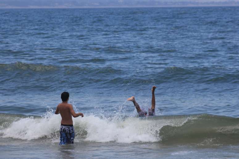 25 de fevereiro - O banho de mar também ajuda a aliviar o calor de até 36ºC