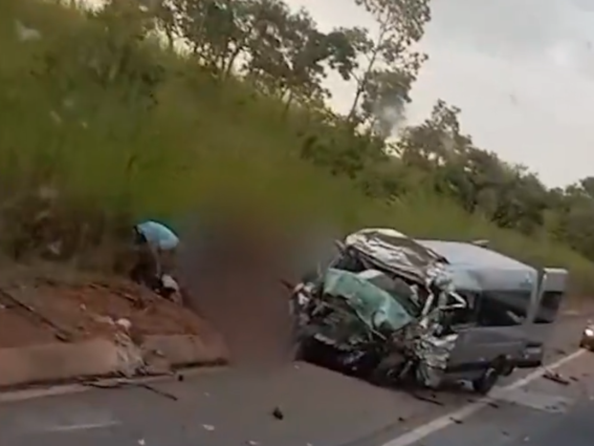 A colisão ocorreu por volta das 6h24, quando a van, que seguia com 13 ocupantes em direção a Brasília, bateu na caminhonete e, na sequência, atingiu o caminhão.