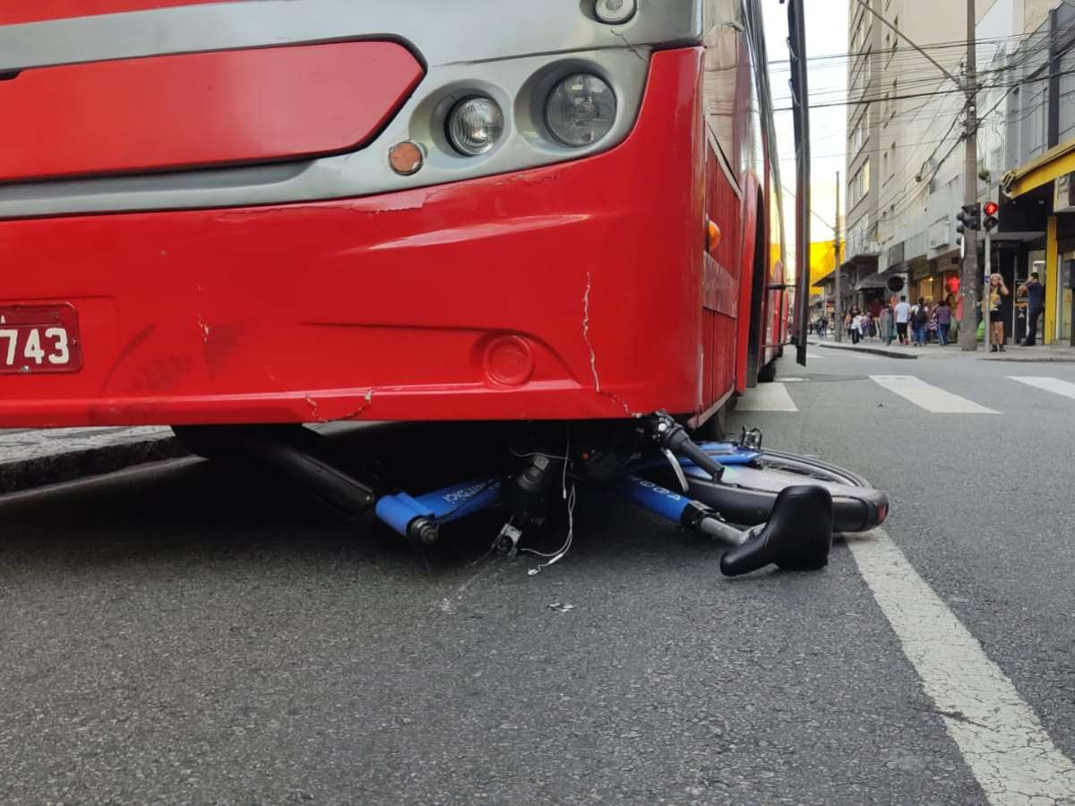 Um ciclista foi atropelado por um ônibus biarticulado, na tarde desta sexta-feira (10), e a bicicleta foi parar debaixo do coletivo. O acidente aconteceu no cruzamento da Alameda Dr. Murici com a Rua Pedro Ivo, no Centro de Curitiba.