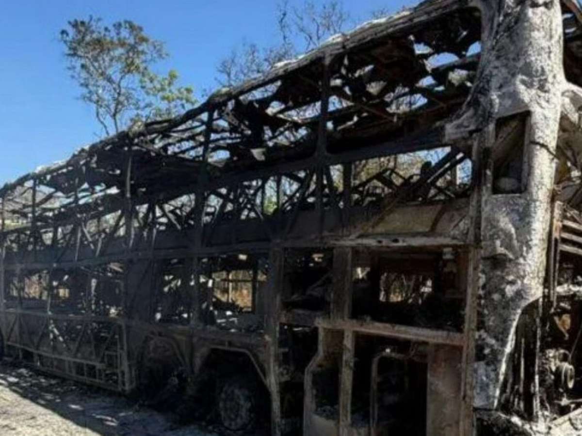 Ônibus com time de futebol pega fogo em rodovia de MG