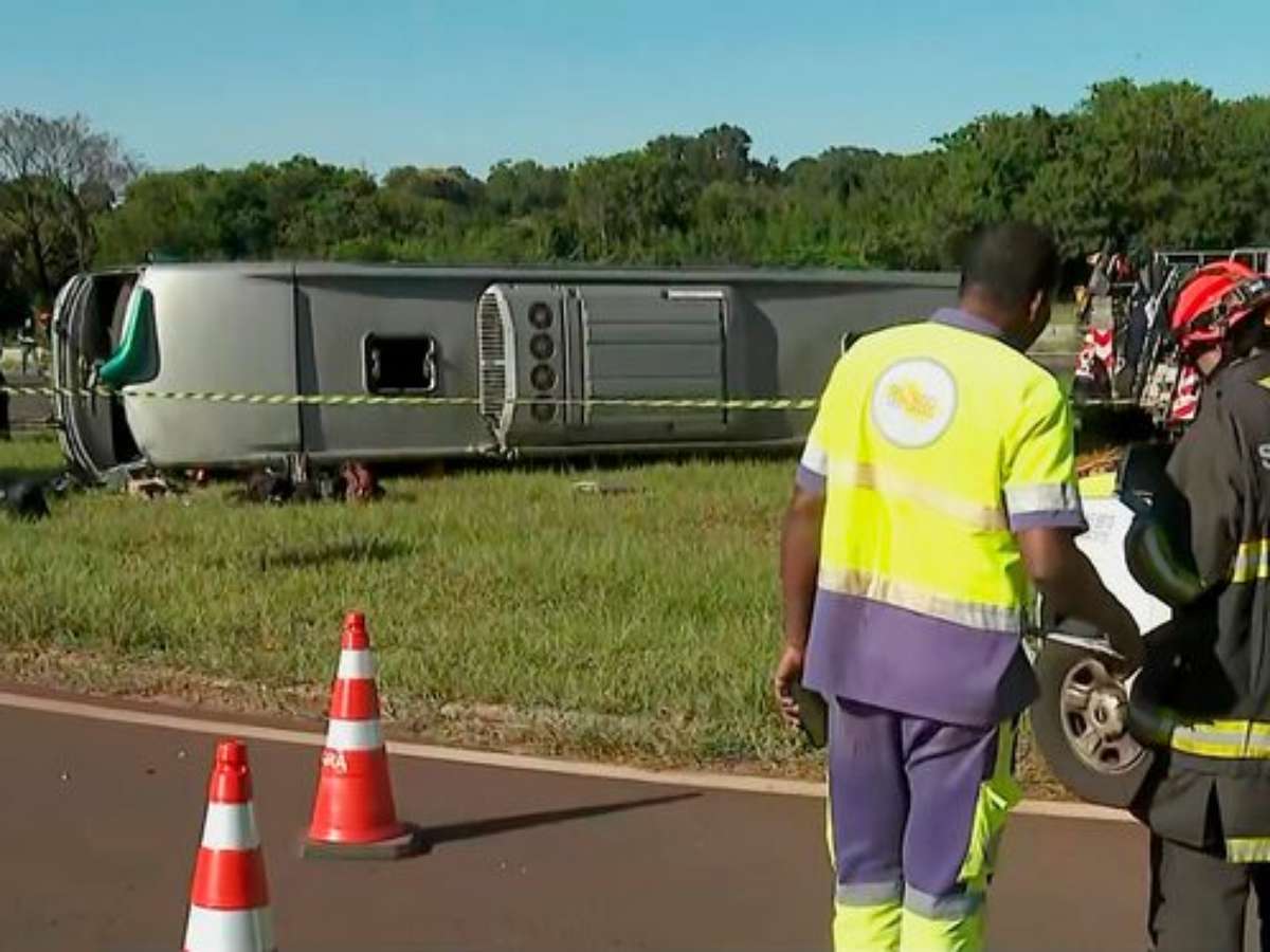 Ônibus de viagem capota e deixa duas pessoas mortas em Jaboticabal, interior de SP