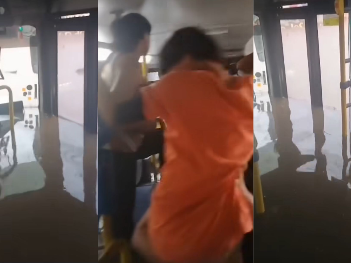 As imagens mostram a água na altura dos assentos dos bancos, e as pessoas dentro do ônibus escalavam a catraca e outras estruturas para conseguir ficar fora da água.
