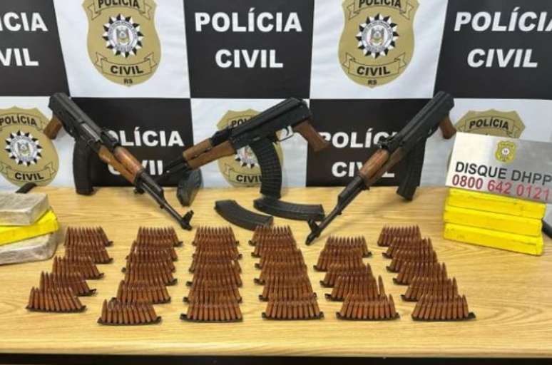 Na noite desta segunda-feira (07), uma operação da Polícia Civil no bairro Vila Nova, zona sul de Porto Alegre, resultou na apreensão de um verdadeiro arsenal de guerra, além de uma significativa quantidade de drogas. A ação localizou três fuzis AK-47, seis carregadores, 340 munições de calibre 7,62, 4 kg de cocaína e 2 kg de crack.
