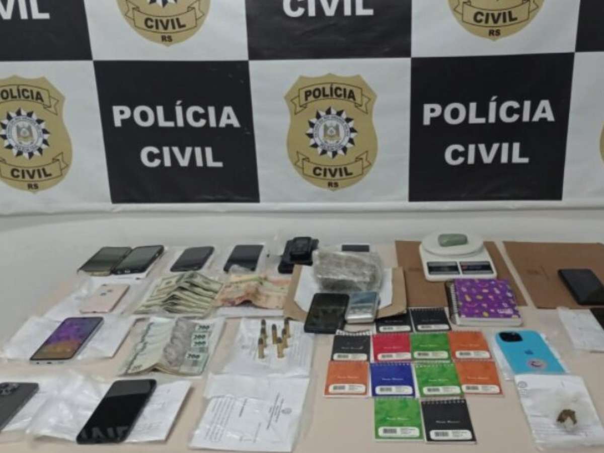 Os agentes apreenderam celulares, maconha, balança de precisão, munições calibre 38 e uma quantia em dinheiro, incluindo cédulas falsas estrangeiras. Parte dos investigados já se encontrava recolhida no sistema prisional.