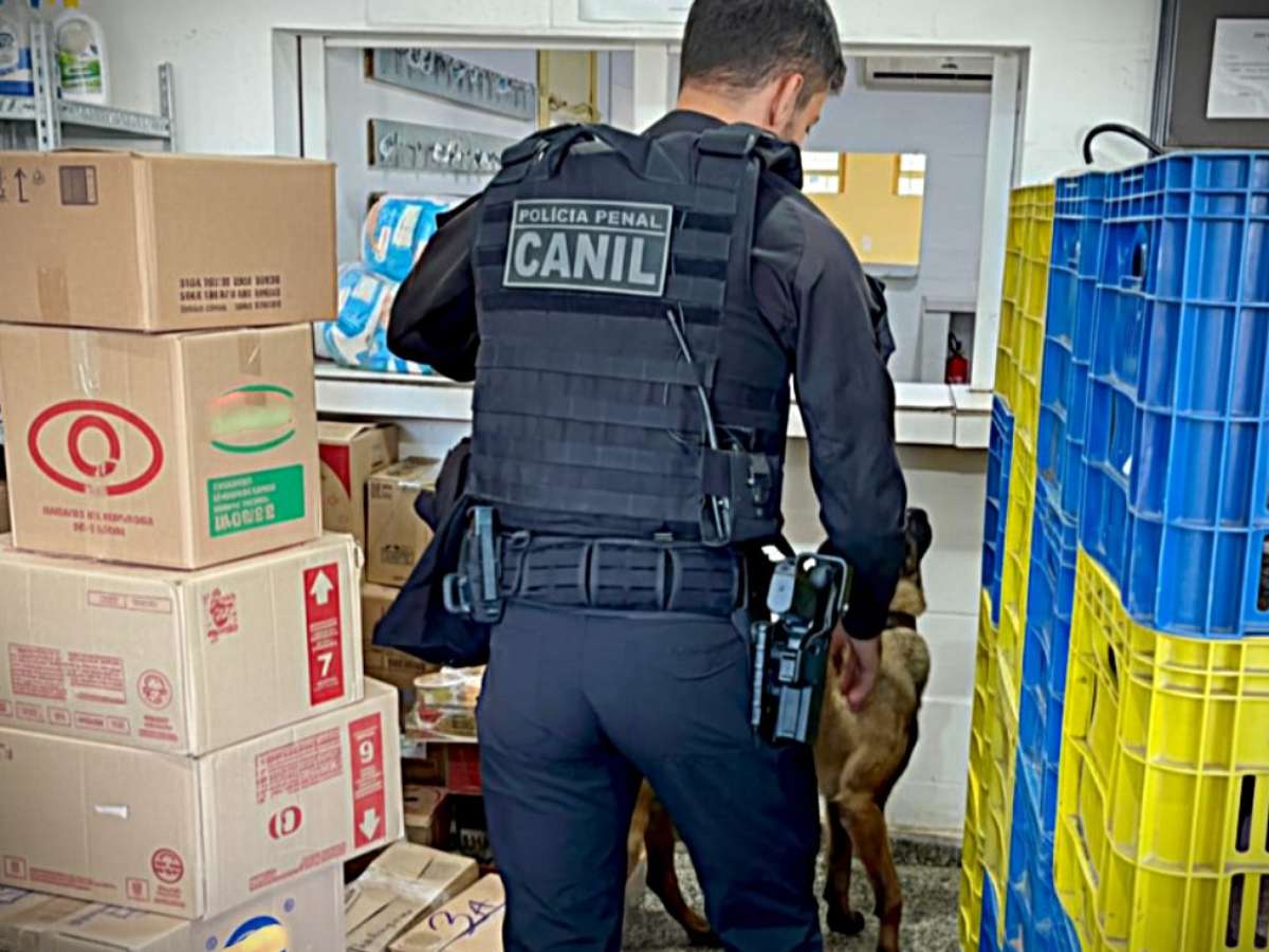 A operação contou com a participação dos cães K9 Cassius e K9 Chico, que verificaram materiais do refeitório, áreas internas da unidade e celas destinadas a trabalhadores. Paralelamente, veículos de fornecedores e prestadores de serviços também passaram por revista detalhada.
