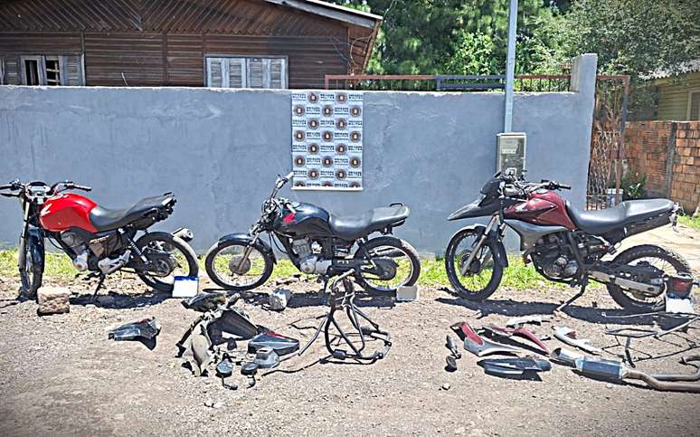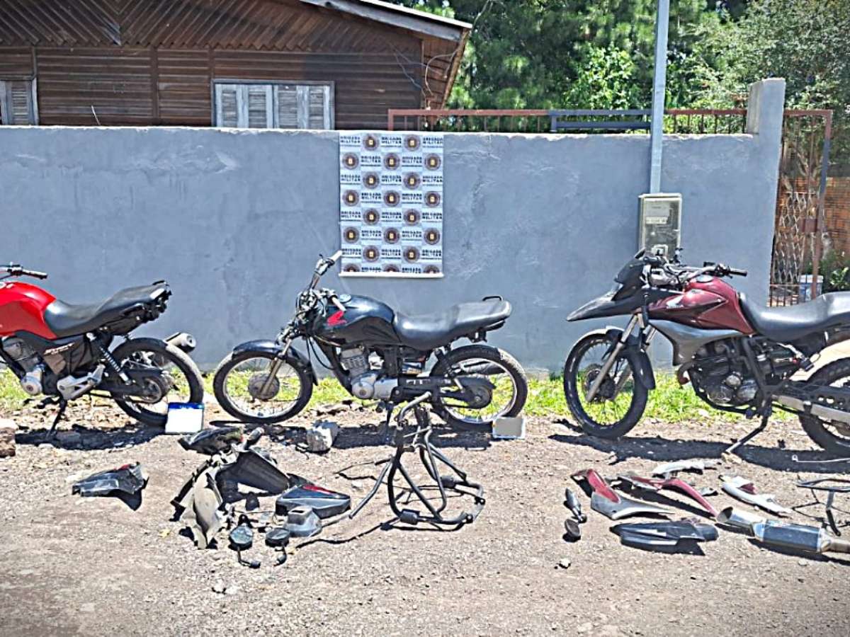 Durante as diligências, foram recuperadas três motocicletas, sendo duas com registro de furto, além da apreensão de diversas peças automotivas.