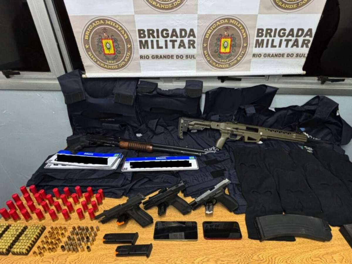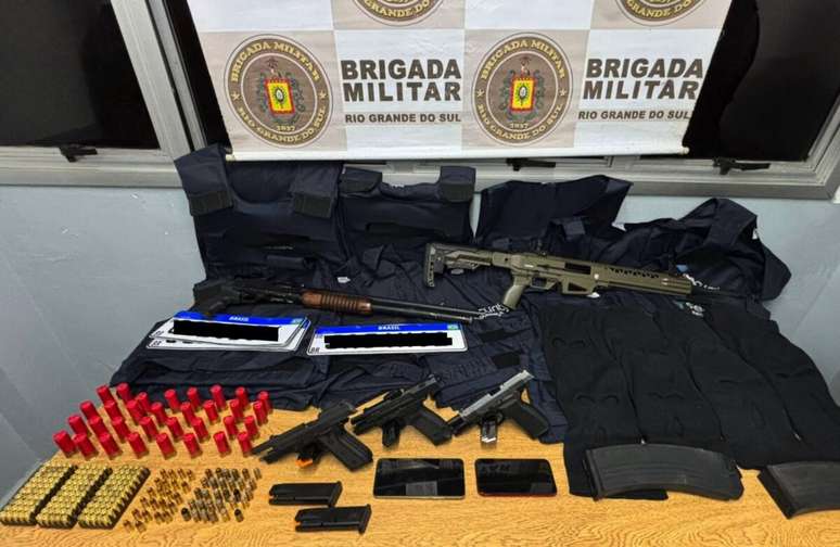 Com os suspeitos, foram localizadas espingardas calibre 12, pistolas, munições variadas, coletes balísticos, balaclavas, além de veículos com registros de roubo e celulares utilizados na ação. O material indica forte envolvimento com o crime organizado.