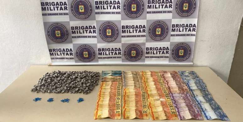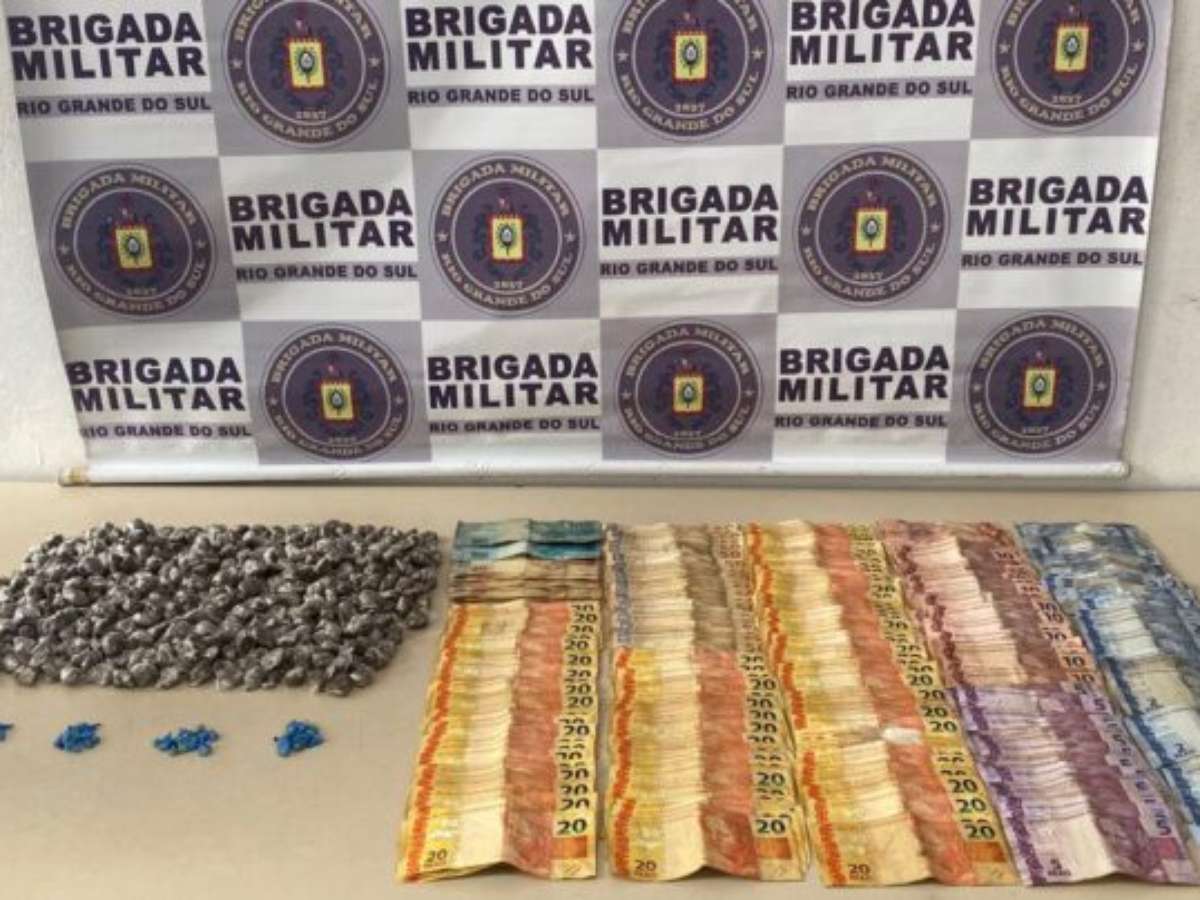 Brigada Militar detém indivíduo com antecedentes criminais e expressiva quantidade de entorpecentes e dinheiro.
