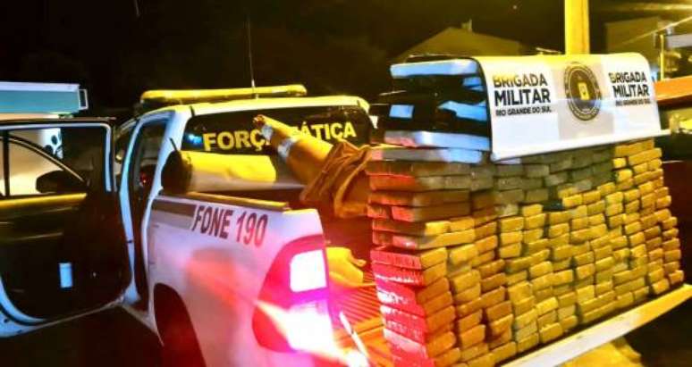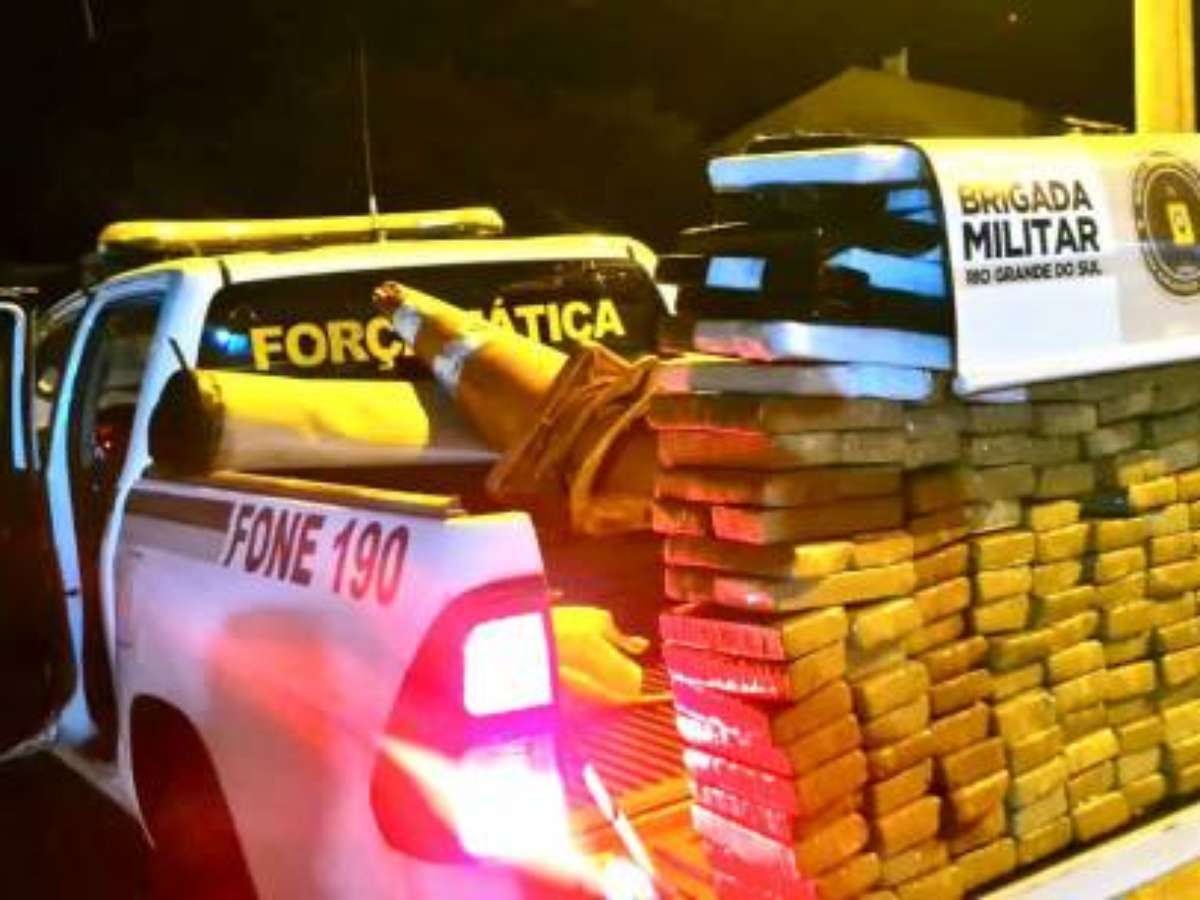 O veículo, um Volkswagen Fox com placas de Dom Pedrito, foi monitorado desde Porto Xavier até São Luiz Gonzaga. Por volta da 1h da madrugada, próximo ao Rincão do Ivai, na RS-168, a Força Tática realizou a abordagem do carro, onde foram encontrados 200kg de maconha.