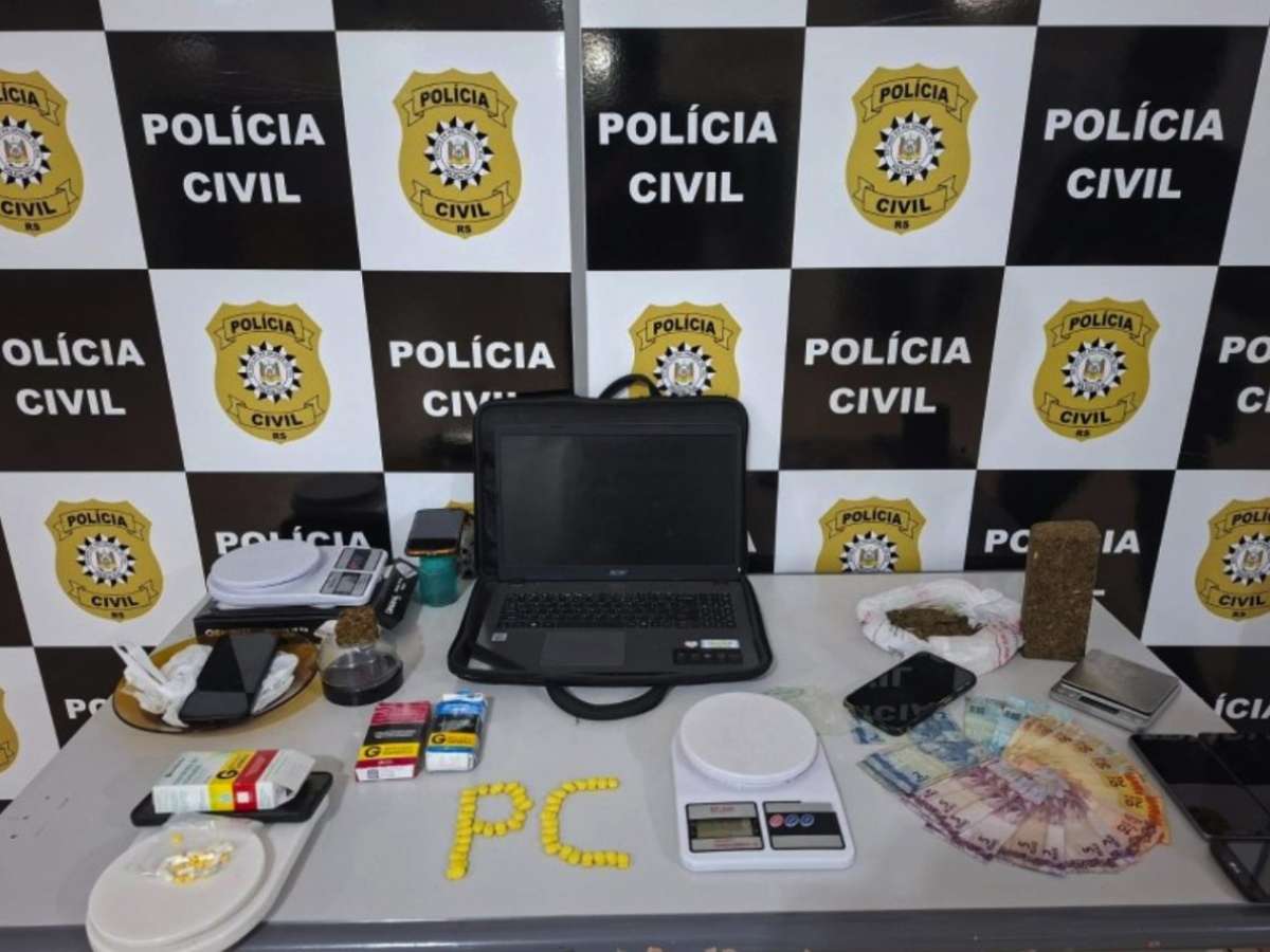 Entre os materiais apreendidos estavam porções de maconha, comprimidos de ecstasy, medicamentos comercializados de forma irregular, balanças de precisão e equipamentos usados para embalar drogas. Os objetos foram recolhidos e apresentados como prova para a investigação.