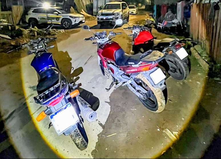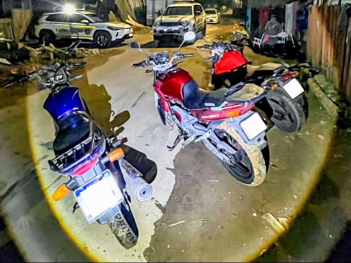 Os veículos foram encontrados em uma área residencial. As motocicletas localizadas são uma Honda CG 150 Azul, uma Honda CB 300 Vermelha e uma Yamaha Fazer YS250 Vermelha. No mesmo local, os policiais identificaram um documento de identidade, que pode auxiliar na identificação do suspeito, frequentemente visto na residência, segundo os vizinhos.