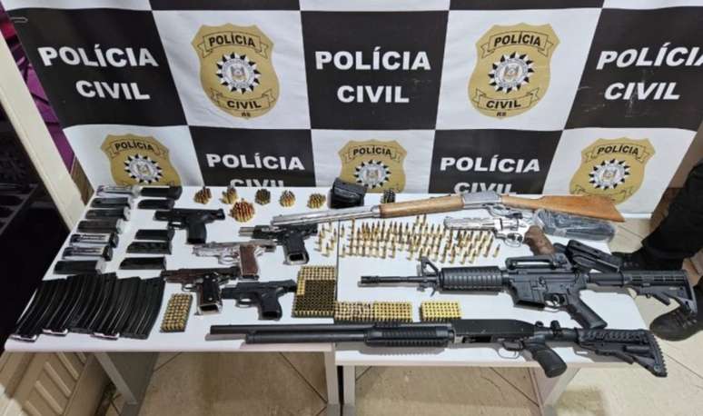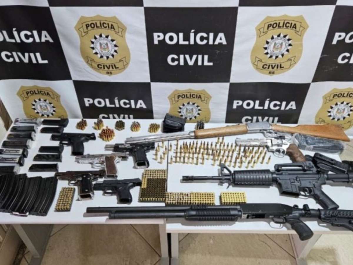 Um homem foi detido temporariamente durante a operação. No decorrer das diligências, os policiais localizaram e apreenderam armas de fogo, além de munições e acessórios relacionados, que estavam em posse dos investigados.