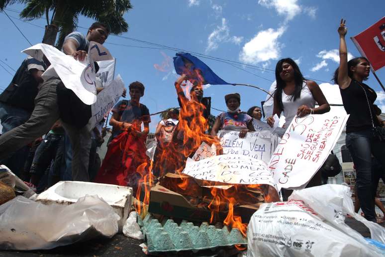 Manifestantes e policiais entraram em confronto durante um protesto na frente da prefeitura do Belém nesta quarta-feira. Segundo a TV Globo, o grupo reunido queria participar de uma reunião dentro do prédio, que debatia o valor da tarifa de ônibus na cidade.