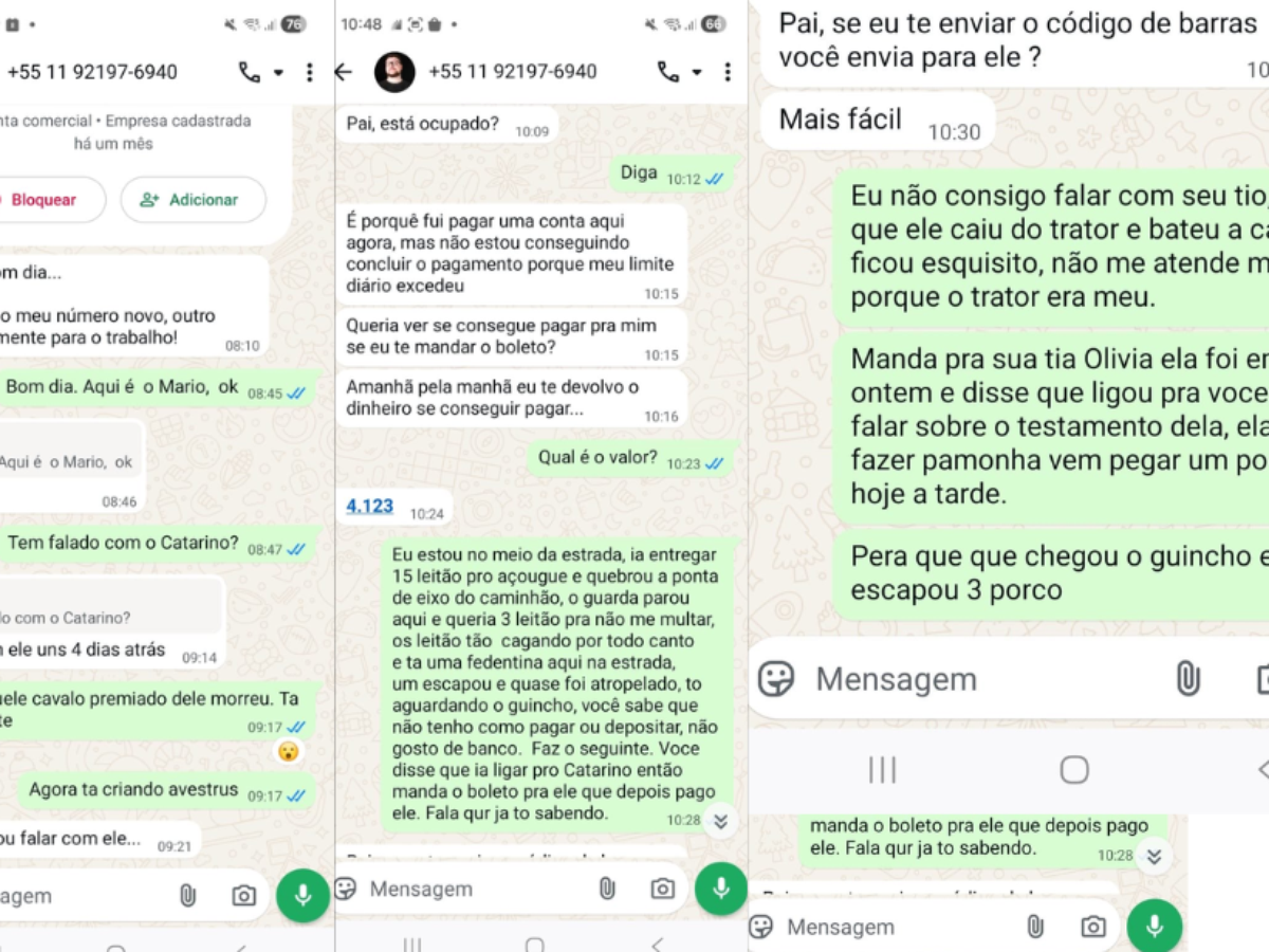 Mesmo após isso, os criminosos continuaram a insistir, mas não conseguiram enganá-lo. Na sequência, ele inventou que o tio havia sofrido uma queda do trator e não atendia mais as ligações. Também disse que a tia estava em casa fazendo pamonha e pediu que ele fosse buscá-la. “Não consigo falar com o seu tio desde que ele caiu do trator e bateu a cabeça, ficou esquisito”, completou a vítima.