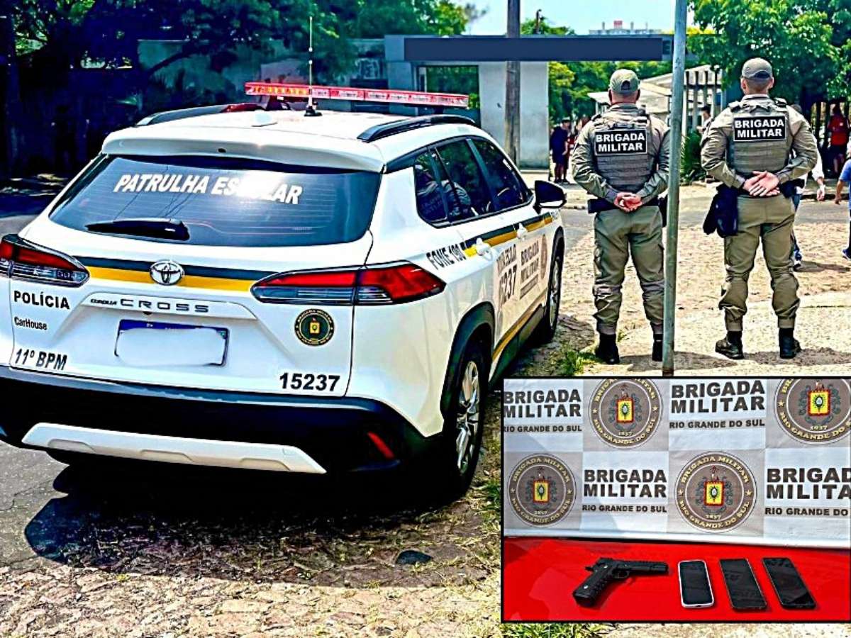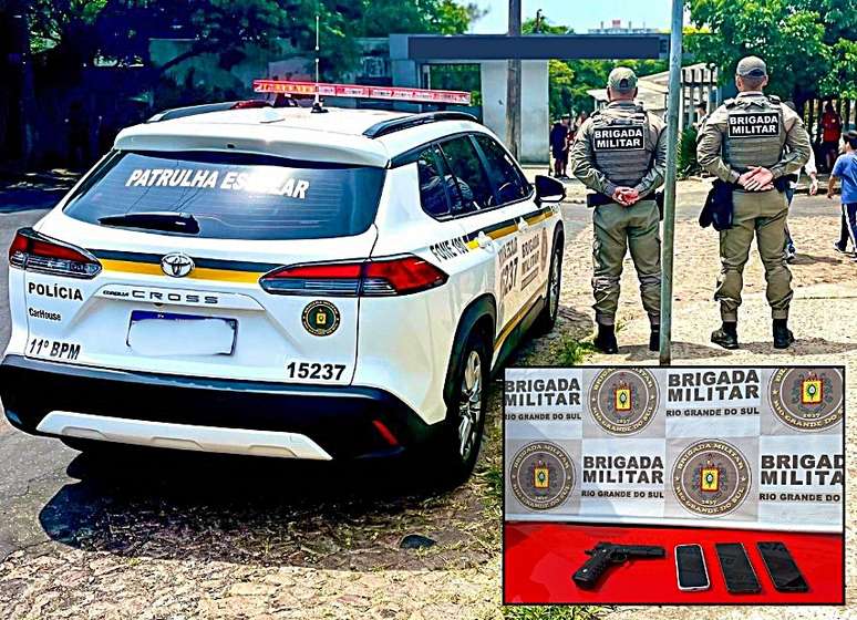 Uma guarnição da Brigada Militar vinculada à Rede de Patrulha Escolar do 11º BPM prendeu, na manhã desta segunda‑feira (8), um homem suspeito de roubar o celular de uma estudante em frente a uma escola estadual no bairro Farrapos, em Porto Alegre. O crime foi comunicado ao sistema de comunicação da rede escolar instantes após ocorrer.