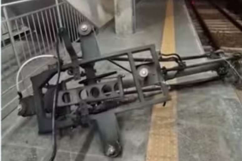 Um pantógrafo, aparelho responsável por captar energia e movimentar o trem, caiu nos trilhos após o trem sair da estação Comandante Sampaio, na Linha 8-Diamante, em São Paulo.