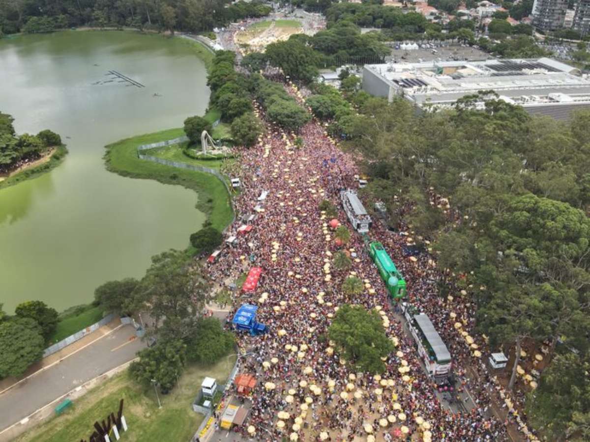 Mesmo com a garoa na zona sul paulistana, uma multidão acompanha o trio elétrico. "Pode chover que ninguém é de açúcar!", gritou o artista para os foliões. Ainda nos primeiros metros do cortejo, ele pediu à equipe responsável pela corda que ampliasse o espaço para o público. Perto da lateral do trio, houve alguns pontos de empurra-empurra.