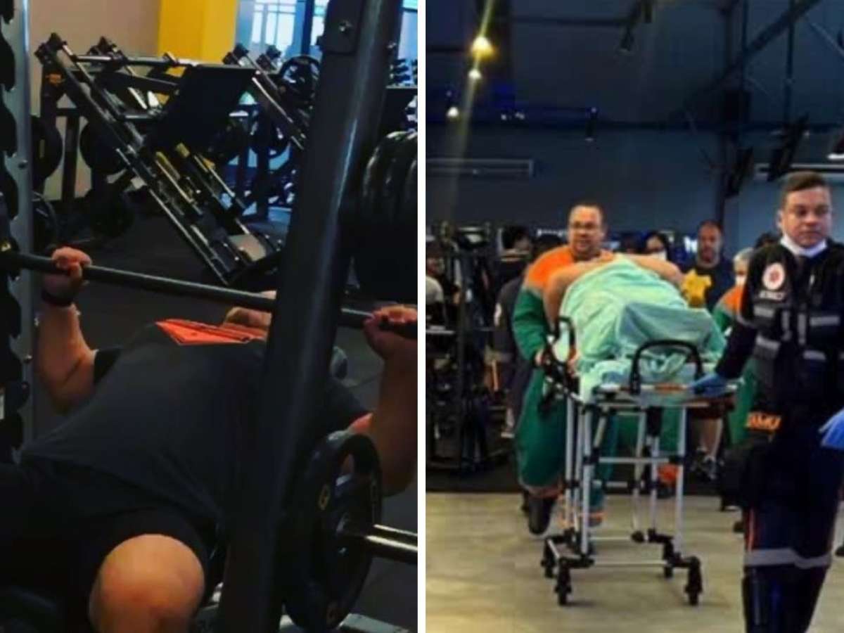 Personal é esmagado por barra com 100 kg após banco ceder em academia