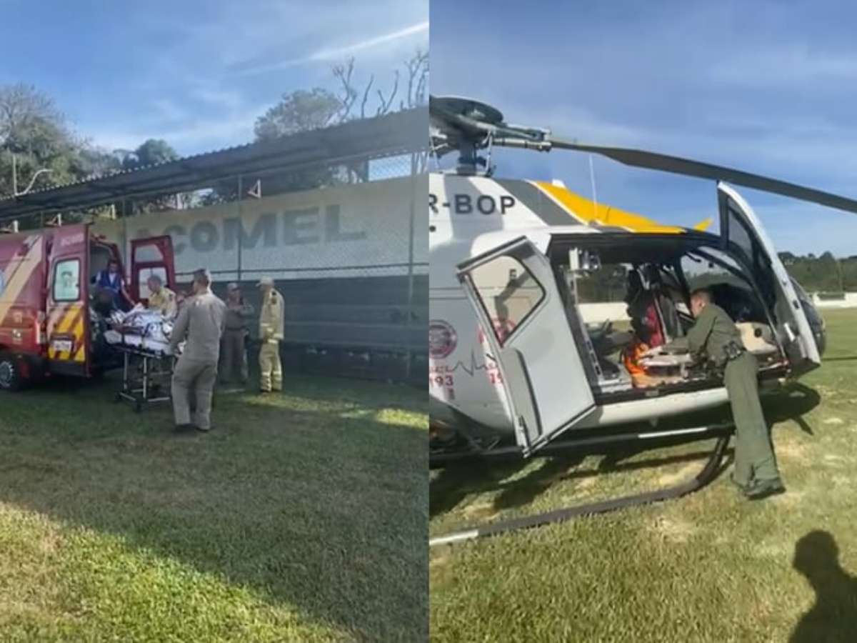 Um homem de 43 anos sofreu ferimentos graves e foi socorrido de helicóptero, na tarde desta sexta-feira (10), após o pneu de um carro estourar em Piraquara, na Região Metropolitana de Curitiba.