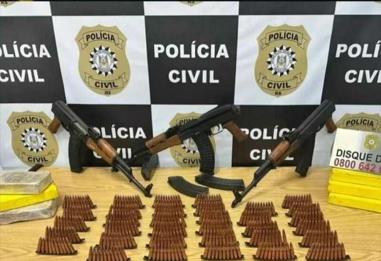 A Polícia Civil apreendeu três fuzis AK-47, munições, carregadores e drogas durante uma operação realizada em uma residência no bairro Vila Nova, na Zona Sul de Porto Alegre. A ofensiva, coordenada por agentes da 2ª Delegacia de Homicídios e Proteção à Pessoa (DHPP), também resultou na apreensão de 340 munições de calibre 7,62 mm, seis carregadores, 4 quilos de cocaína e 2 quilos de crack.